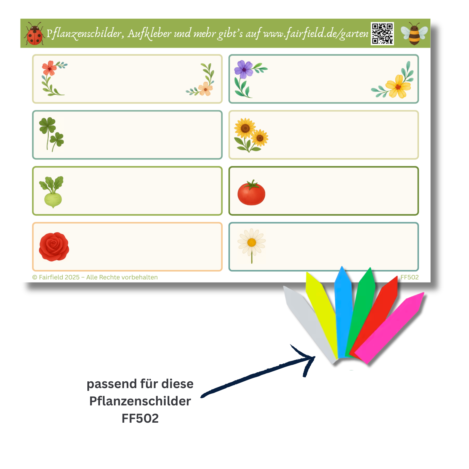 Ein Bogen mit 8 Aufklebern für Pflanzenetiketten FF502 - 67x19 mm pro Sticker